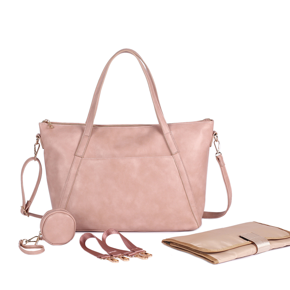 oyvb-475 Eco-Friendly PU Mommy Tote Set | Insulated Bottle Pocket + Convertible Strap + Changing Mat